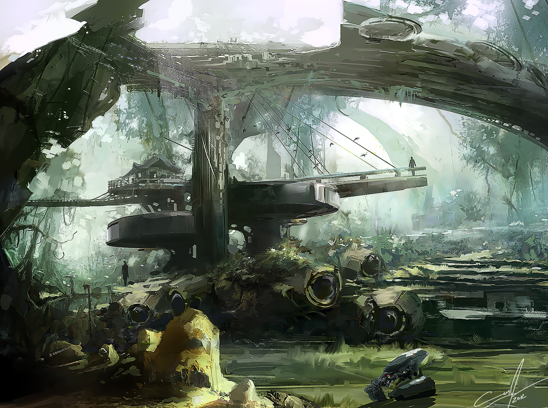 Thinking about the future and about habitations in the future, I always liked the idea of the bio-dome, so I sketched one up. Imagine a dome-shaped Biosphere 2 that you could construct on a polluted earth, or even another planet. My concept here is a closed, domed, hothouse kind of system that could produce its own vegetation, conserve water and atmosphere, and support human life.